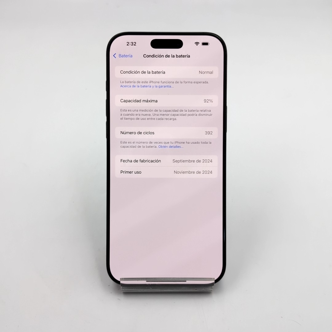 El iPhone 16 Pro Max tiene un sofisticado diseño de titanio grado 5 con un nuevo acabado microarenado. Como el titanio es uno de los metales con mayor relación peso/dureza, este modelo es increíblemente resistente y ligero. Además, viene en cuatro colores que se robarán todas las miradas, como el nuevo titanio del desierto.