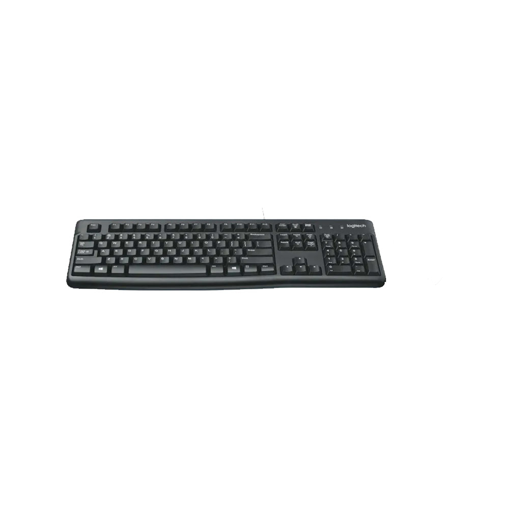 Teclado Logitech K120 con cable USB, resistente y cómodo para escribir. Ideal para oficina o casa, con teclas silenciosas y diseño duradero.