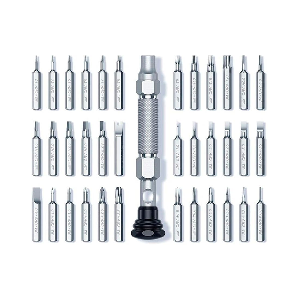 Set Completo de 101 Piezas: Incluye una inmensa variedad de puntas de destornillador de precisión (planas, Phillips, Torx, Pentalobe – para iPhone/MacBook, Tri-wing, etc.) para adaptarse a prácticamente cualquier tipo de tornillo pequeño que encuentres en electrónica.